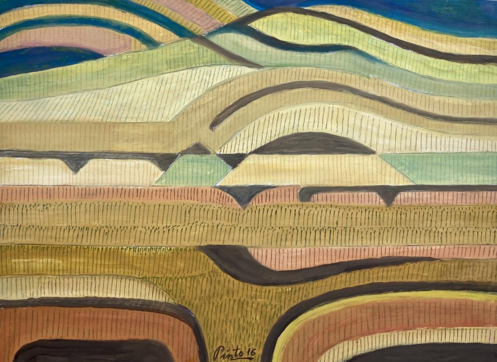En esta obra, el artista depura su lenguaje, reduciendo las formas a lo esencial. El paisaje deja de ser descripción para convertirse en síntesis, donde color, ritmo y estructura construyen una visión íntima y arraigada del territorio.