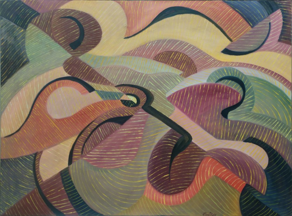 La serie Surcos (1998) condensa un momento clave en la trayectoria de Miguel Pinto: el paso de una pintura de paisaje de corte más figurativo a un territorio plenamente abstracto, donde el paisaje se vuelve experiencia interior##. Las infinitas curvas y espirales de los cuatro lienzos despliegan un espacio mental en rotación, donde el campo deja de ser un motivo externo para convertirse en pura vibración interna.