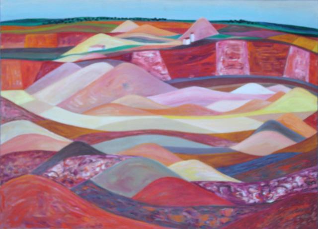 Esta obra representa un paisaje de canteras desde una mirada claramente estilizada y emocional, alejada del realismo y próxima a la abstracción lírica##. A primera vista, el espectador se enfrenta a una sucesión de formas curvas, onduladas y superpuestas que evocan colinas o montículos. Sin embargo, al saber que se trata de canteras, la interpretación cambia por completo: lo que parecía un paisaje natural, se revela como un territorio intervenido, trabajado por el ser humano, lleno de huellas de la actividad extractiva.