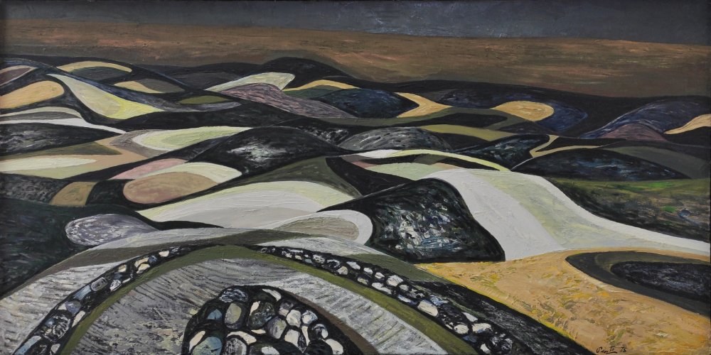 A través del color, la composición y el simbolismo de los montones de piedras, la obra transmite la lucha del ser humano por hacer productiva una tierra hostil, resaltando la relación entre la naturaleza y el esfuerzo humano por adaptarse a ella.