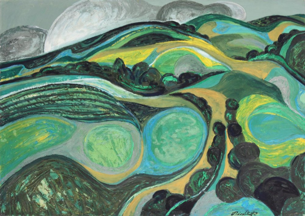 En su conjunto, la pintura no busca una representación literal de la naturaleza, sino una reinterpretación emocional y subjetiva del paisaje. La fusión entre nubes, árboles y tierra crea un espacio casi onírico, donde el color y la forma evocan sensaciones más allá de la realidad concreta. Esta obra se inscribe dentro de la época Subjetiva de Miguel Pinto, donde su pintura adquiere un carácter simbólico y expresivo, transformando la naturaleza en un lenguaje visual cargado de emoción y significado.