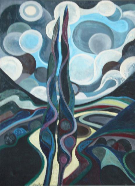 Las nubes circulares y envolventes, junto al sol de luz contenida, generan una atmósfera de ensoñación. Los colores y las formas ondulantes no reproducen la naturaleza tal como se ve, sino tal como se siente. En esta etapa, Miguel Pinto exterioriza su mundo interior a través de evocaciones, contrastes y una organización sutil de todos los elementos, buscando provocar en el espectador una transformación sensible.